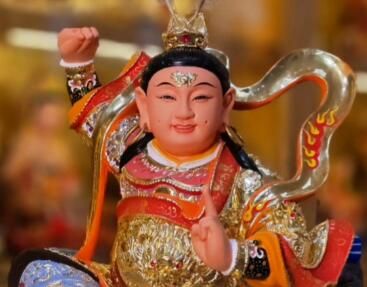 公乃灵珠降世,瑞光高悬,本姓李门三郎,世称“三太子”“太子爷”。初以剔骨还父、割肉还母明志,复赖莲花化身重生,更显神异无双。身携乾坤圈蕴无穷神力,腰束混天绫映万丈霞光,脚踏风火轮追风逐电,手擎火尖枪凛凛生威。昔年怒斩夜叉、智斗敖丙,东海扬威以护民;往岁力战魔将、镇守天门,乾坤定序而安邦。玉皇敕封中营元帅,永镇天门,东南沿海更尊为镇水之神,司掌降妖伏魔、护境安民,实乃无畏精神之化身。