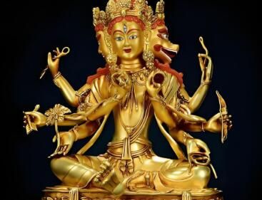 11、化相百千,随缘化现。 摩利支天菩萨常见有三面六臂、三面八臂,以及一面二臂、五面十臂、六面十二臂等等;多面广臂,随机化现。